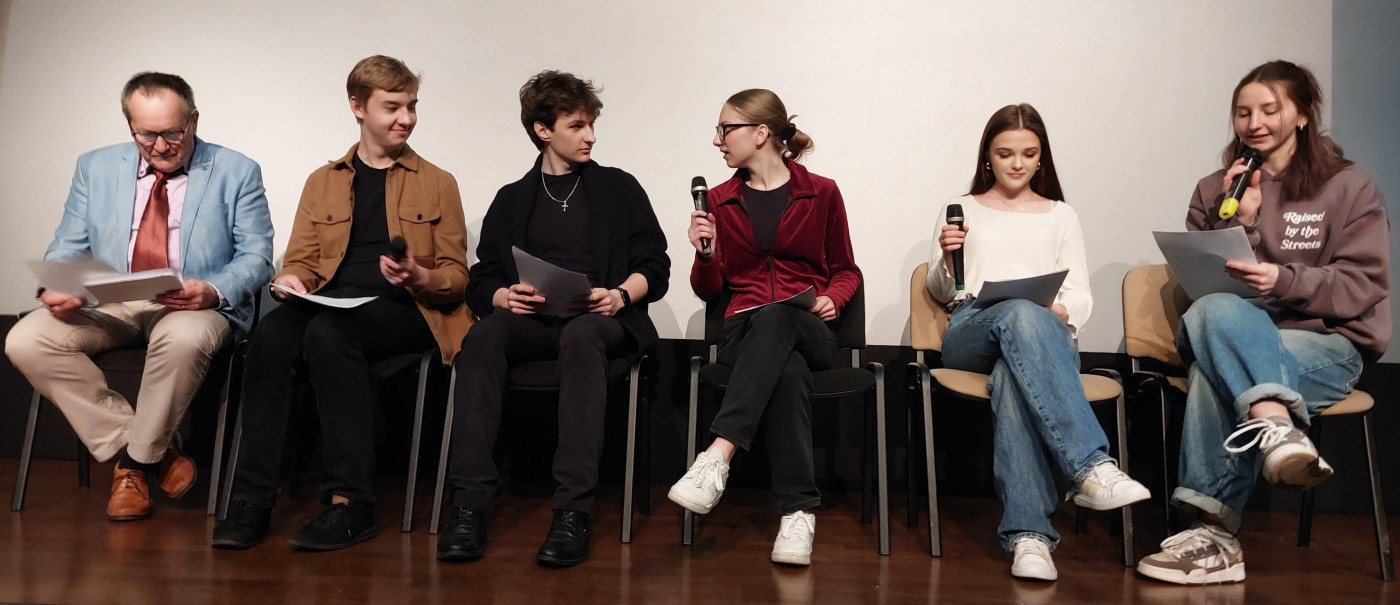 Wprawdzie przed chwilą Balladyna z Kostrynem pozbawili życia Gralona … wydaje się, że nie zmąciło to wesołej atmosfery zebranych gości. Dopiero przybycie Gońca zakłóca spokój. Donosi nie tylko o bohaterskich poczynaniach Kirkora, o zrzeczeniu się tronu ale też o chłopskim pochodzeniu swej żony, co jest sprzeczne z tym co mówiła Balladyna. Przyłapana na kłamstwie traci grunt pod nogami.
