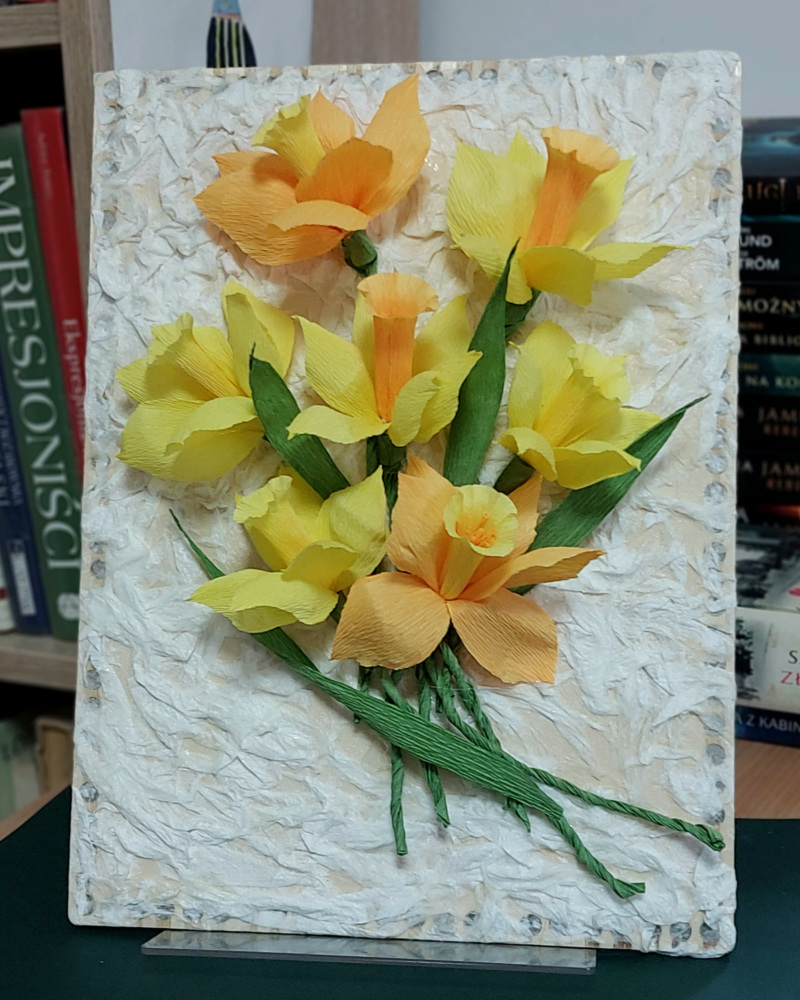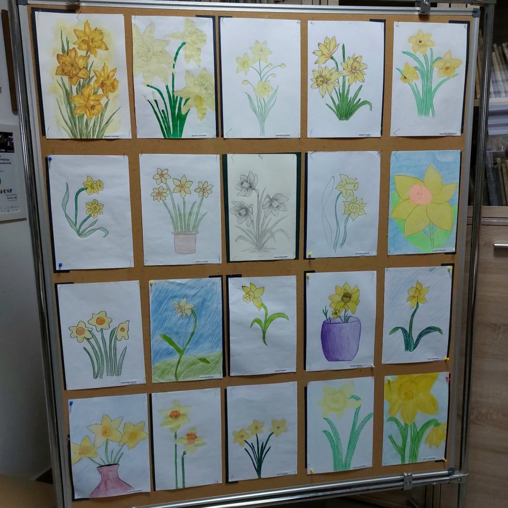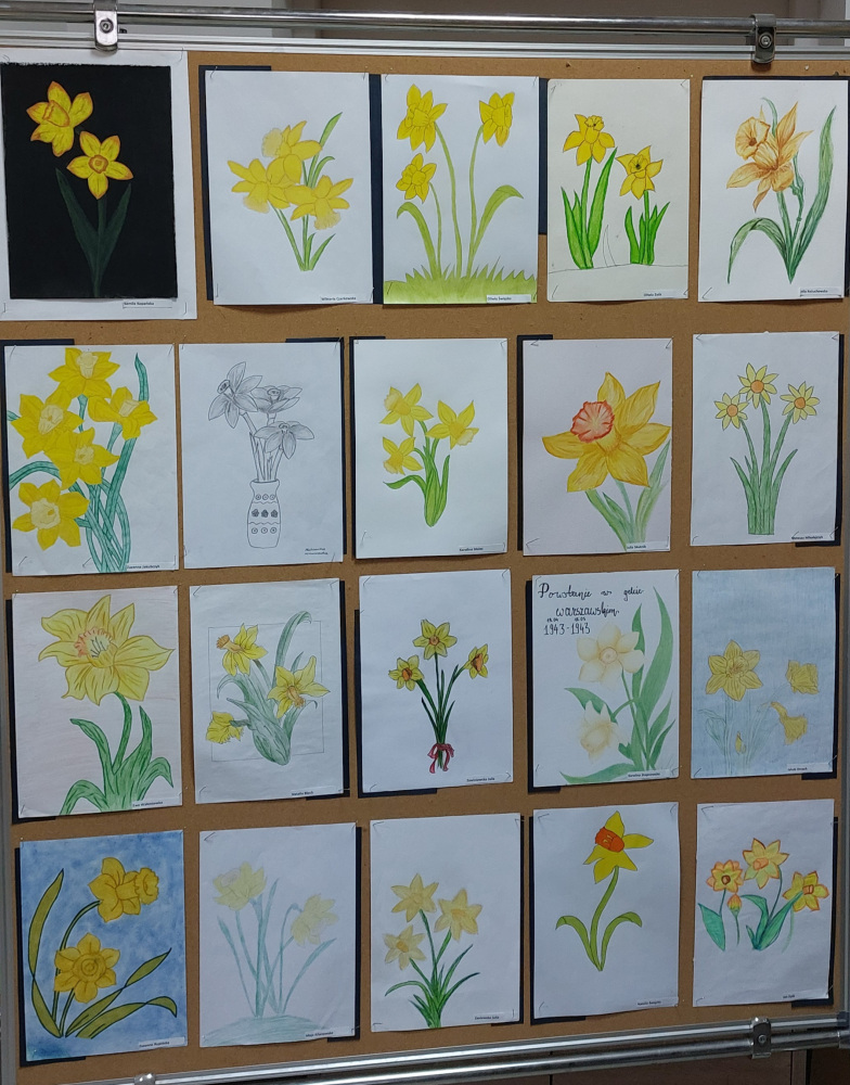W tym roku, ze względu na to, iż 19 wypada w Wielką Sobotę i nie będziemy mogli wręczać papierowych żonkili, przygotowaliśmy wystawę prac plastycznych ŁĄCZY NAS PAMIĘĆ, których tematem jest żonkil. Dzięki współpracy i życzliwości wielu osób do biblioteki dotarło ponad 90 rysunków, grafik, akwareli. Ze względu na ograniczone możliwości ekspozycji nie wszystkie mogły zostać zaprezentowane.