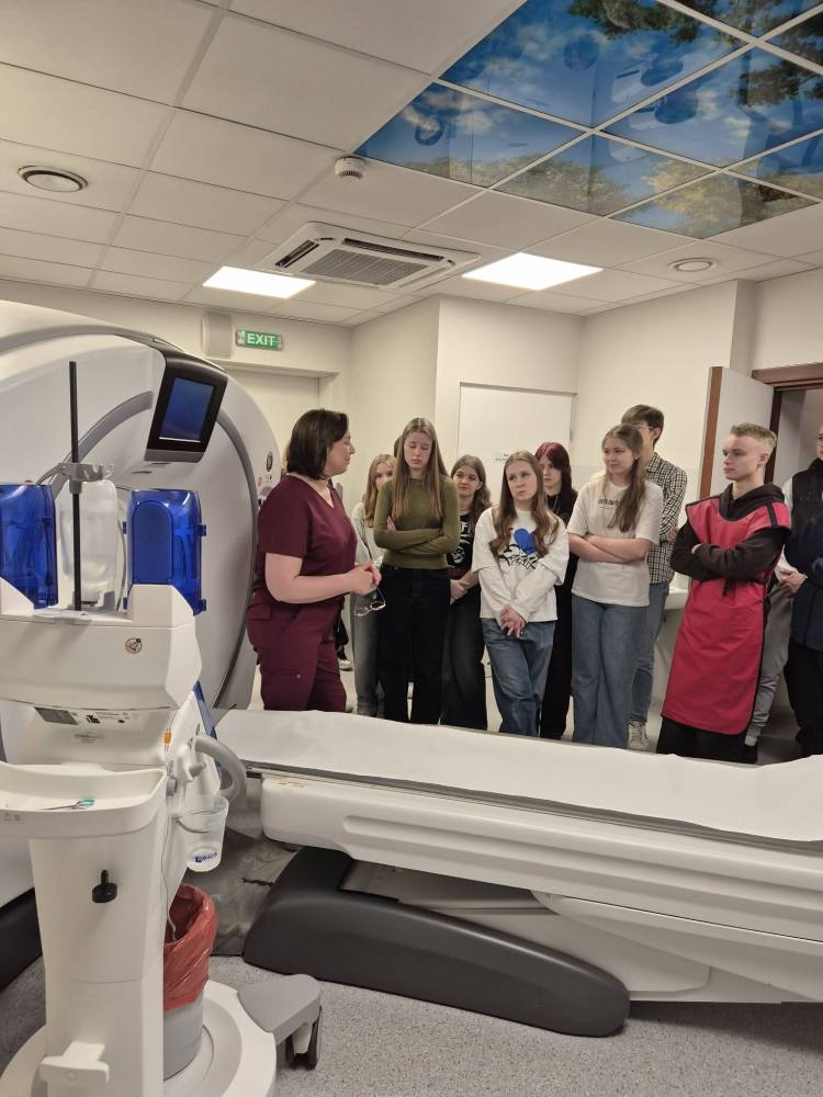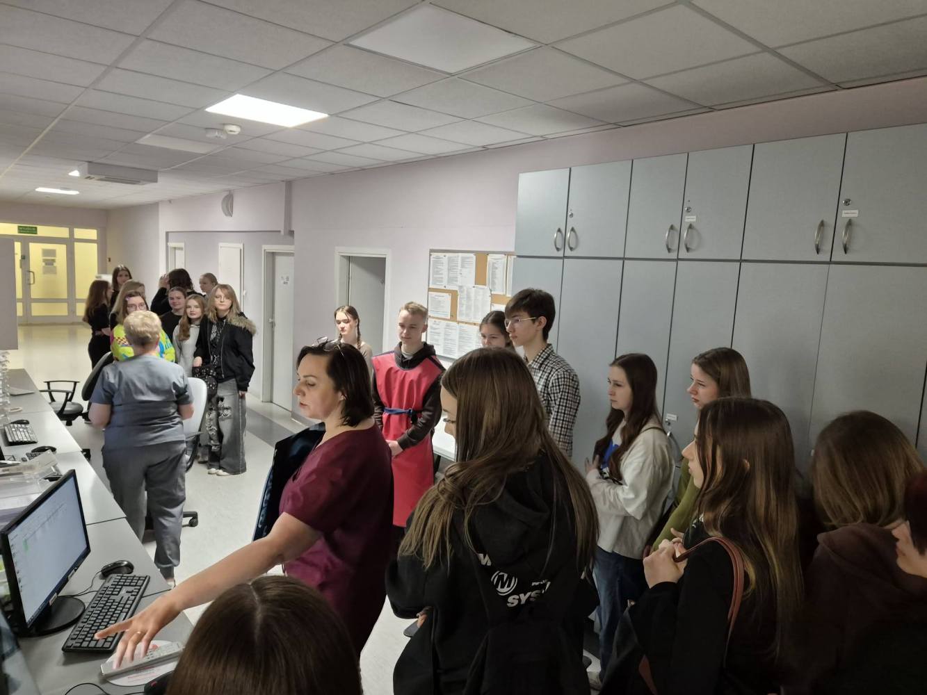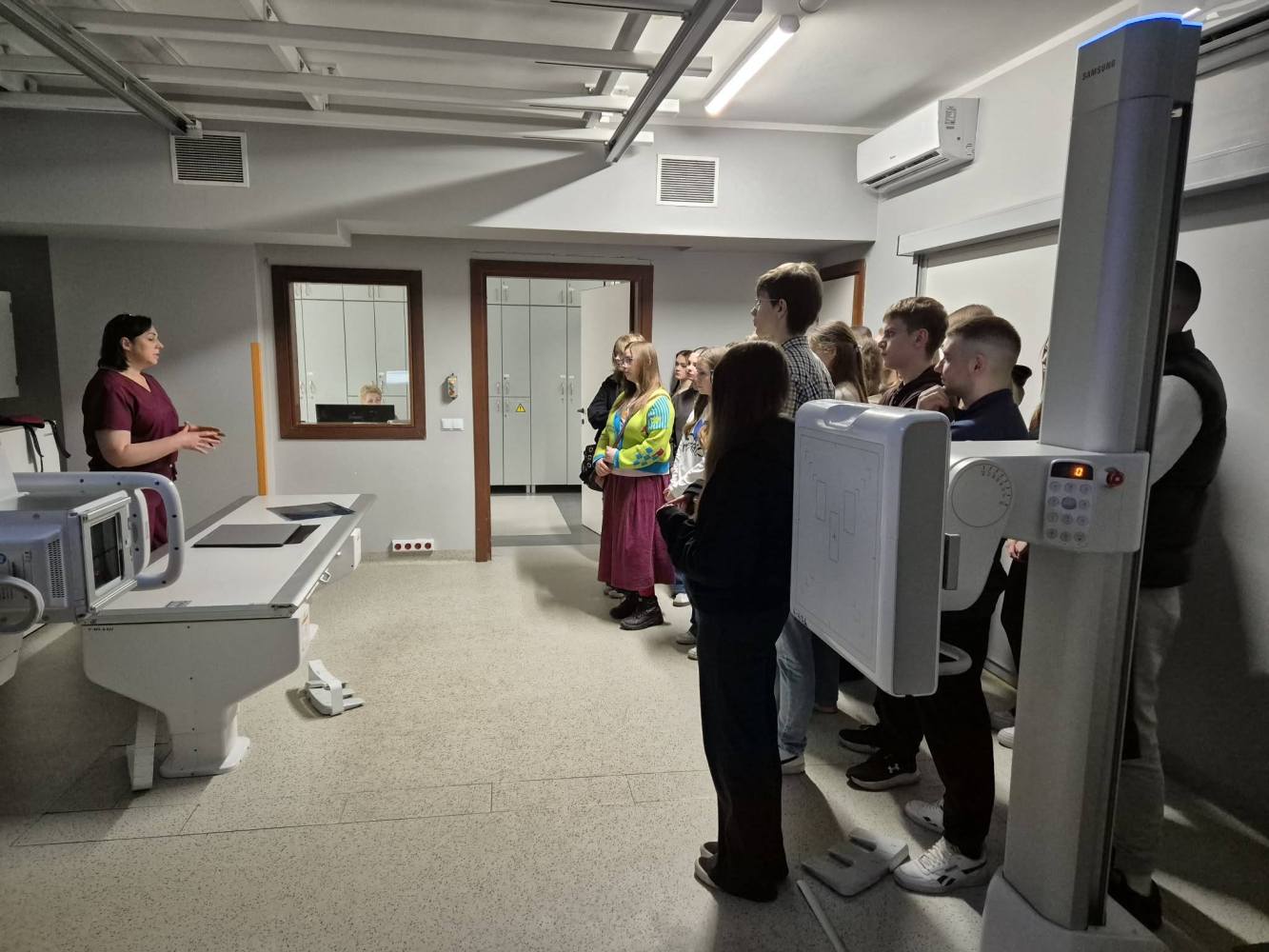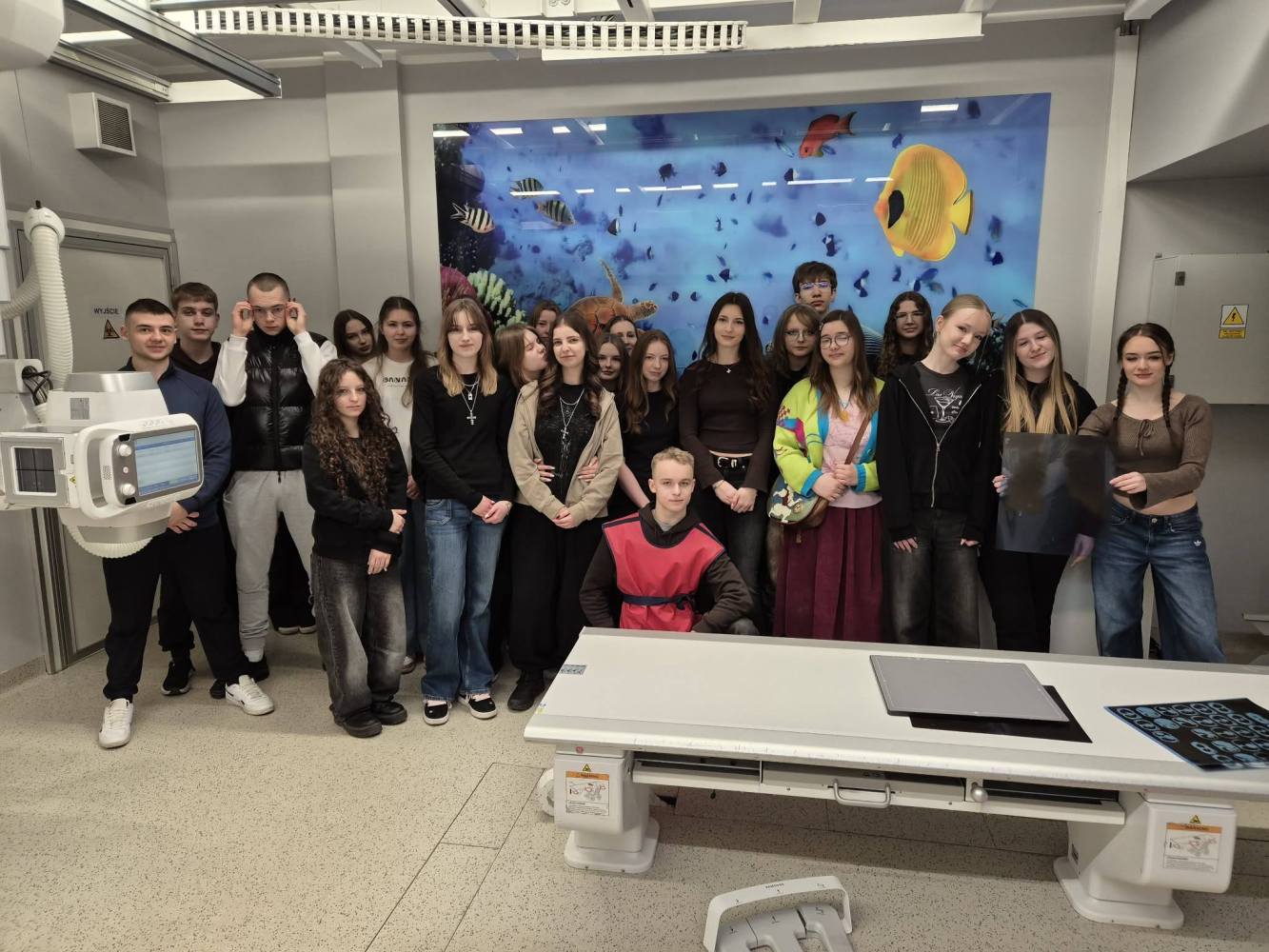 W dniu 13 marca 2026 roku uczniowie naszej szkoły uczestniczyli w lekcji poglądowej w Pracowni Diagnostyki Obrazowej SPZZOZ Szpitala w Ostrowi Mazowieckiej. Lekcja ta odbyła się w ramach realizacji projektu, mającego na celu przybliżenie uczniom klas biologiczno-chemicznych tematyki związanej z instytucjonalną ochroną zdrowia. Projekt przewiduje zajęcia z epidemiologii w Powiatowej Stacji Sanitarno-Epidemiologicznej w Ostrowi Mazowieckiej (klasy drugie) oraz zajęcia z diagnostyki obrazowej i diagnostyki biochemicznej (klasy trzecie).