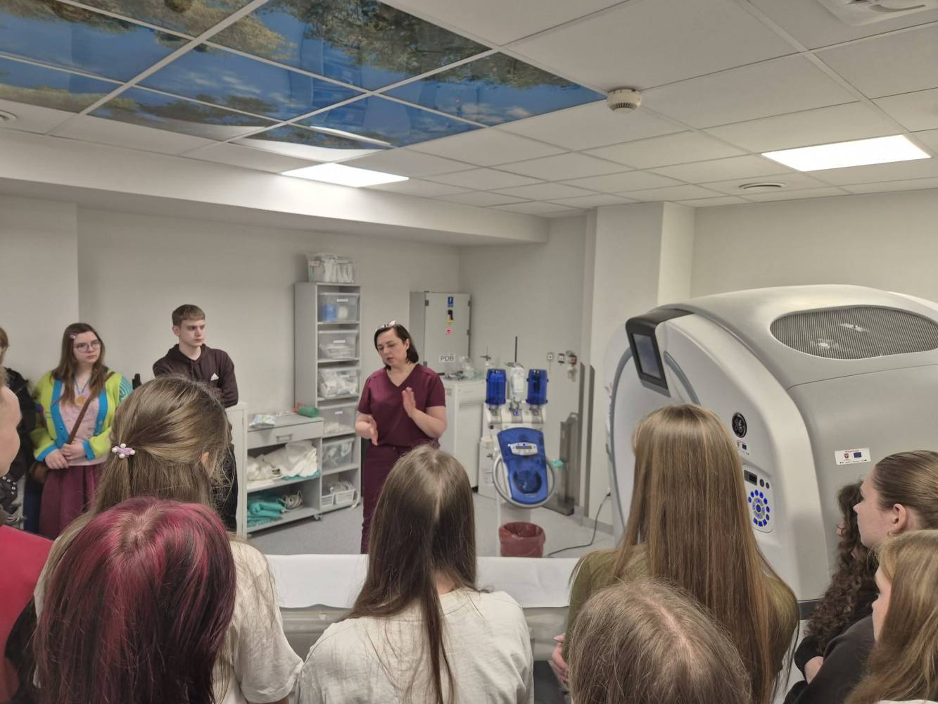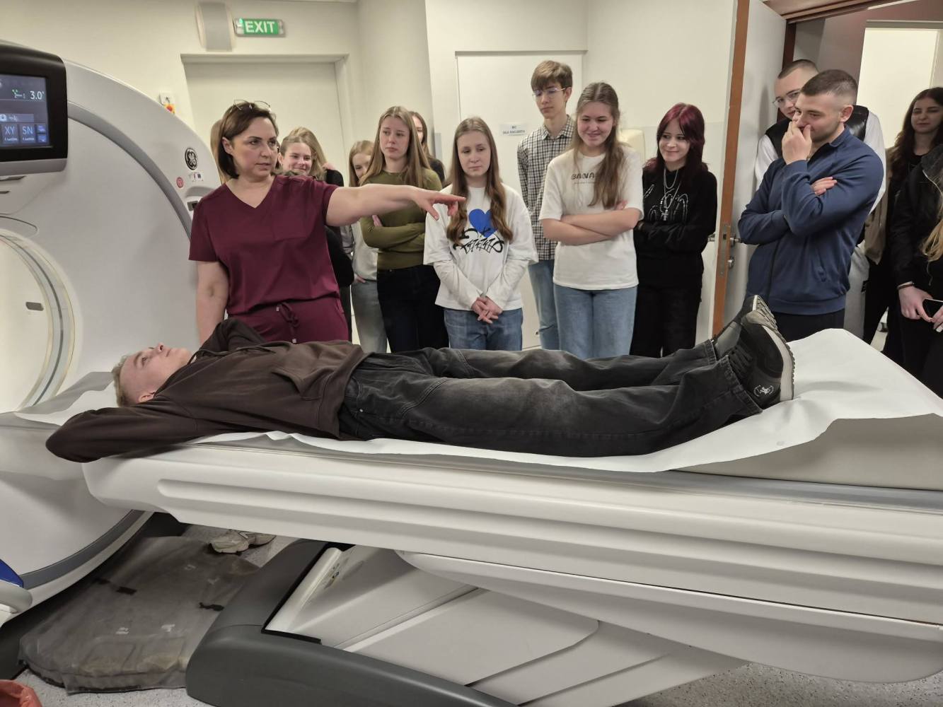 W związku z tym uczniowie klasy 3C pod opieką pana Tomasza Falkowskiego uczestniczyli w lekcji poglądowej nt. nowoczesnego diagnozowania obrazowego pacjentów. Naszymi uczniami zaopiekowała się pani doktor Dorota Półtorak (specjalista radiologii i diagnostyki obrazowej), która przybliżyła im tematykę i wprowadziła do miejsc, do których nikt poza upoważnionym personelem nie ma na co dzień wstępu. Zaprezentowała również zasady działania najnowocześniejszego sprzętu diagnostycznego, jakim dysponuje szpital ostrowski, w tym: