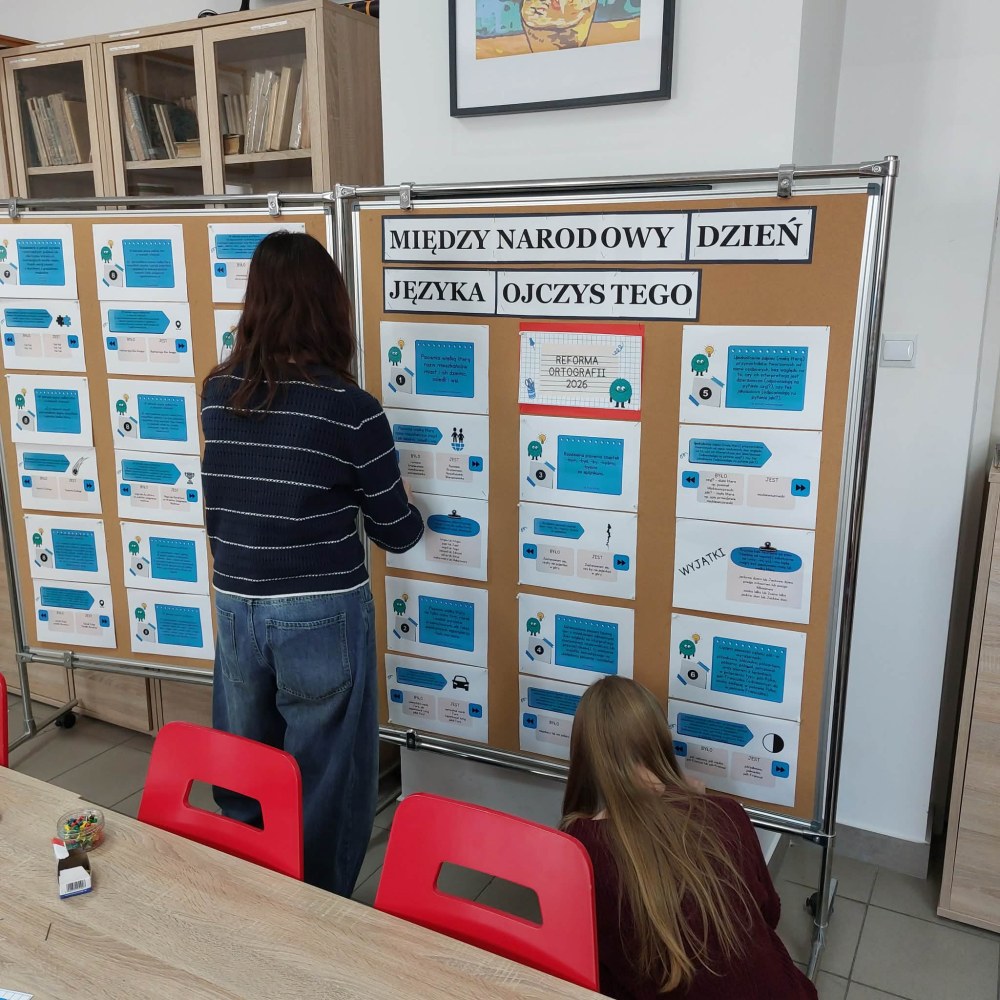 Jest to dzień, którego celem jest promowanie różnorodności językowej i kulturowej oraz ochrona języków zagrożonych wyginięciem . Przypomina on jak ważne jest pielęgnowanie własnego języka, dbanie o poprawność językową i szacunek dla innych kultur. W wielu krajach organizowane są z tej okazji konkursy, warsztaty i wydarzenia edukacyjne. Nasza szkoła w tym roku przygotowała wystawę dotyczącą nowej reformy ortografii wprowadzonej w 2026 roku. Uczniowie mogą zapoznać się z nowymi zasadni poprawnej pisowni i dowiedzieć się jak odnaleźć się w tych niecodziennych regułach.