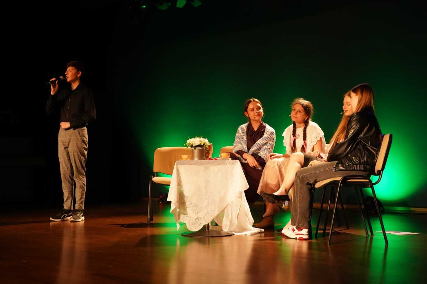W dniu 21.05.2024 r. w ostrowskim kinie odbyło się spotkanie członków Uniwersytetu Trzeciego Wieku, podczas którego młodzież z naszej szkoły pod opieką pani Doroty Krasińskiej wystawiła ciekawą scenkę artystyczno-muzyczną. Po występie wszyscy aktorzy otrzymali gromkie brawa, a u niejednego widza pojawiły się łzy wzruszenia. Możemy być dumni z naszych młodych artystów, którzy swoją wspaniałą grą aktorską i śpiewem nie tylko zachwycili wszystkich obecnych na sali, ale także zachęcili do refleksji nad interesującym świętem, czyli Dniem Matki!