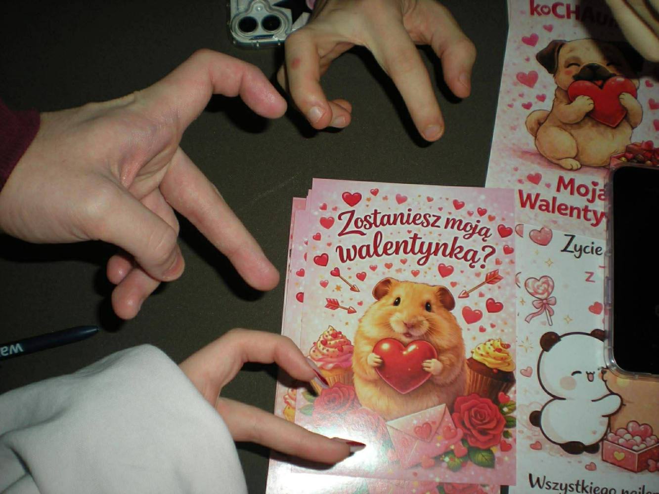 Zainteresowaniem cieszyła się również sprzedaż kartek walentynkowych. Każdy mógł wybrać coś wyjątkowego i przekazać kilka miłych słów bliskiej osobie. ![]()