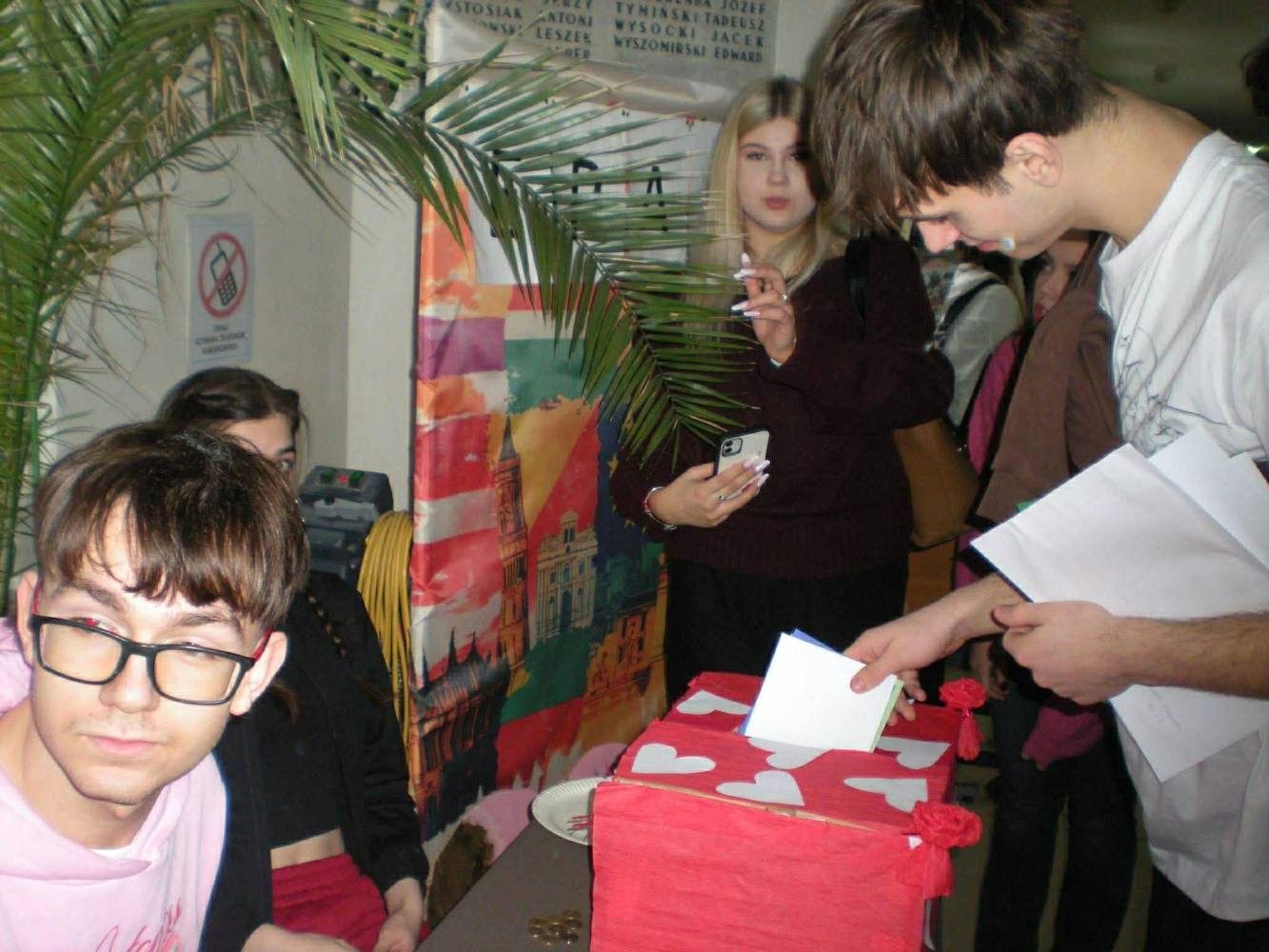 Pojawiła się walentynkowa ścianka, przy której uczniowie mogli zrobić pamiątkowe zdjęcia z przyjaciółmi (i nie tylko