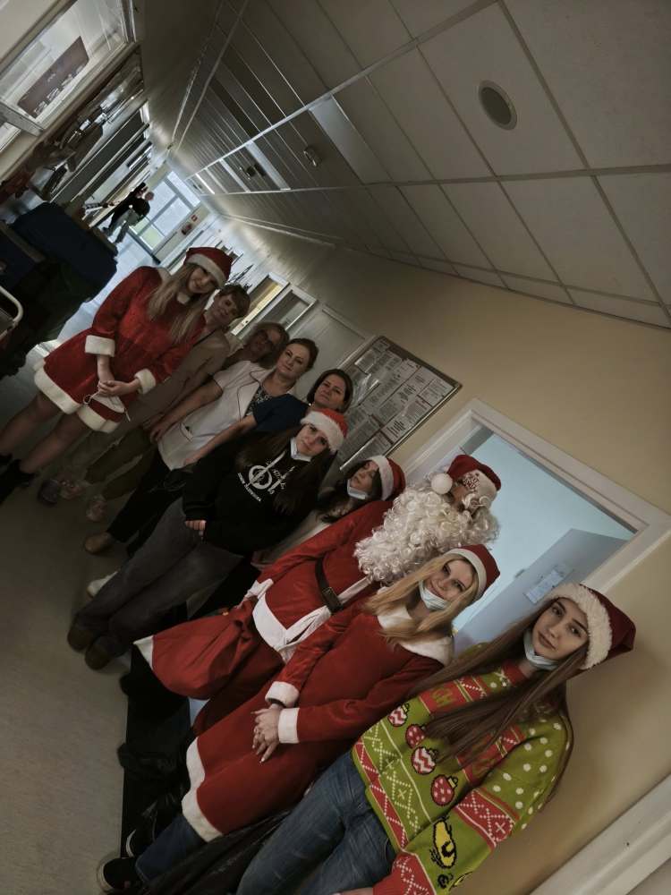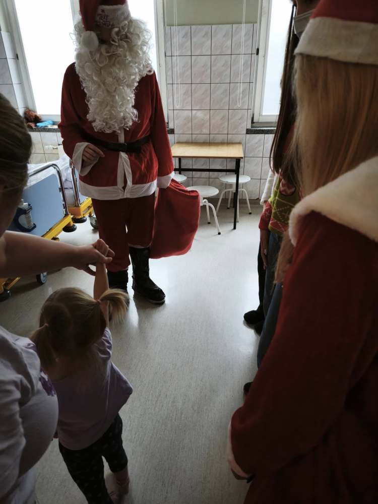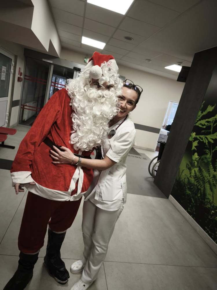 Mikołaj robił prawdziwą furorę – wywołał mnóstwo uśmiechów. Ciepło i serdeczność spotkały nas również na szpitalnych korytarzach od starszych pacjentów, którzy z wdzięcznością przyjęli nasze życzenia.